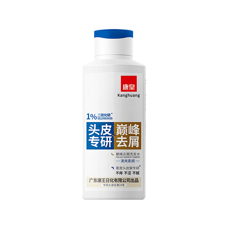2025年,康王戰略發(fā)布上市康皇巔峰去屑系列洗發(fā)水。該系列突破性地將國家專(zhuān)利成分丹皮酚與最新升級去屑活性成分(二硫化硒、0CT)科學(xué)復配,融合傳統中草藥智慧與現代頭皮微生態(tài)科技。其協(xié)同增效配方精準解決市場(chǎng)痛點(diǎn):舒緩頭皮敏感,強韌修護發(fā)絲,實(shí)現洗后頭皮舒緩無(wú)痕、發(fā)絲輕盈順滑(不癢、不澀、不膩)的理想狀態(tài)。
